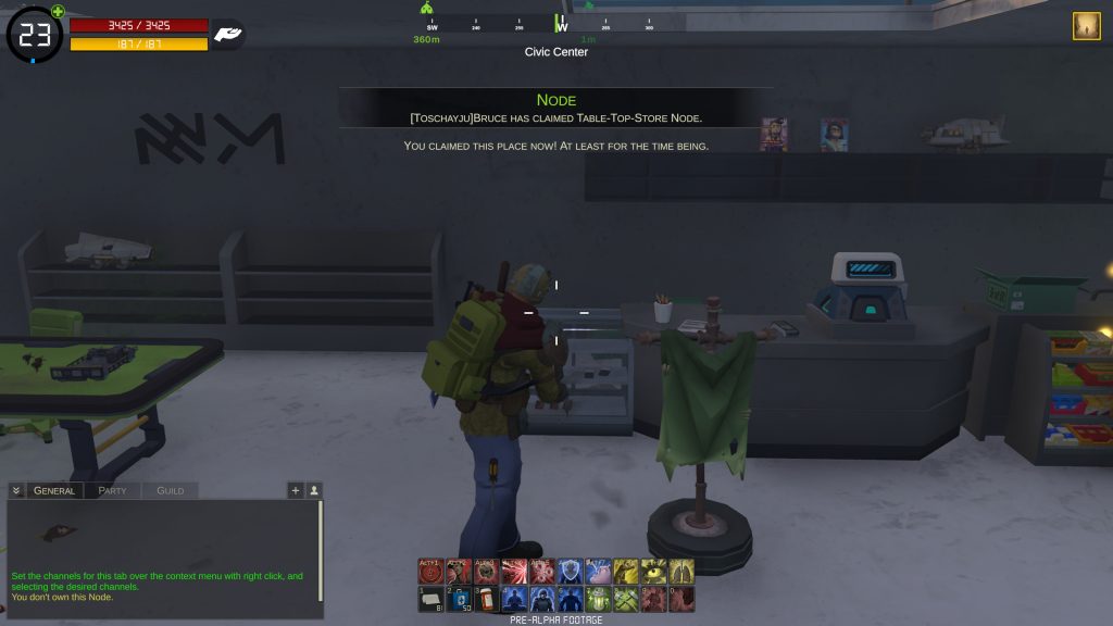 To claim a Node, the player must interact with the flag located in the Node area by pressing the “E” button while standing close to it. This will start a countdown timer, and once the countdown is completed, the character gains ownership of that specific Node. Be careful though: the countdown will stop immediately if the player takes any damage during the process. Make sure the area is secure before attempting to claim it.